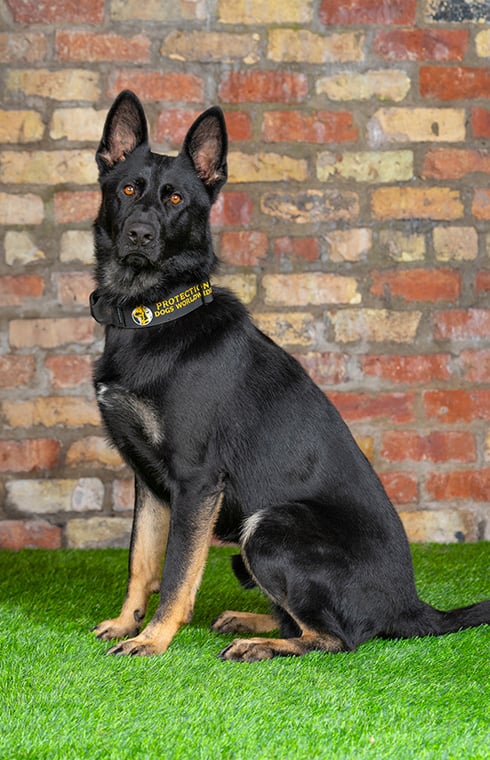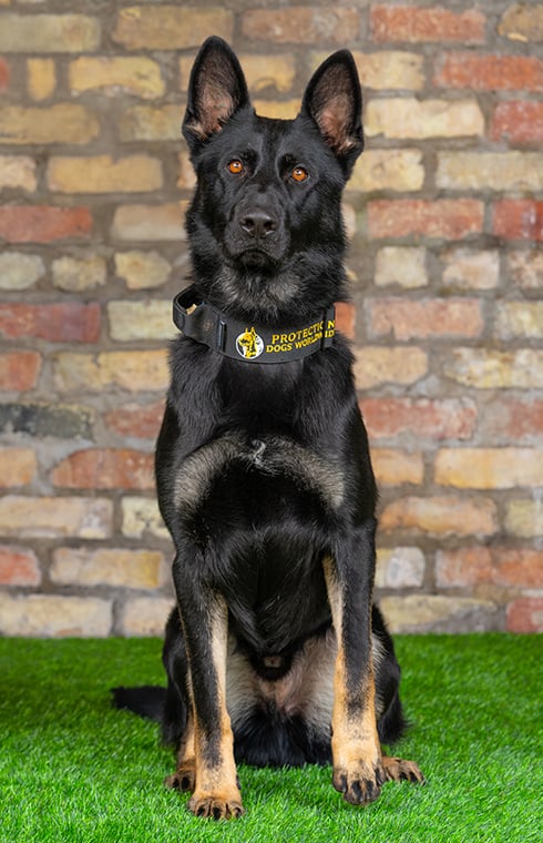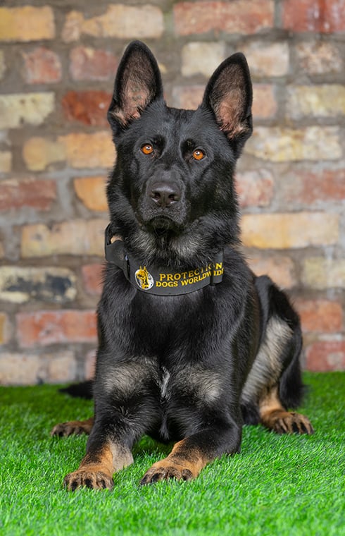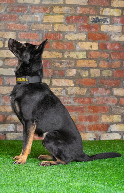 Farrow is a sweet-natured and well-balanced German Shepherd with an exceptional temperament. He loves children and enjoys playing with other dogs, making him a wonderful companion. His obedience and protection training are progressing beautifully, and he’s well on his way to becoming the perfect family protection dog.